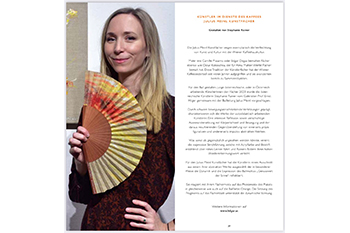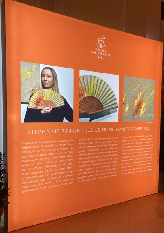 Project: A painting commissioned by Julius Meinl Austrtia for Vienna's Kaffeesiederball. The work was used to create an art fan (produced in a quantity of severaly hundreds) which was distributed at the ball. The project was acccompanied by intense press and media coverage.